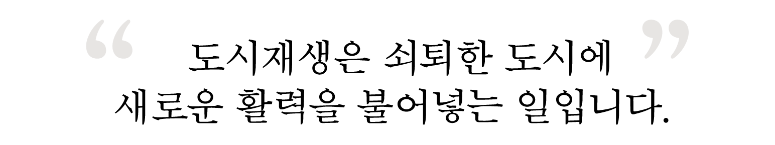 도시재생은 단순히 낡은 건물을 고치는 사업이 아닙니다.