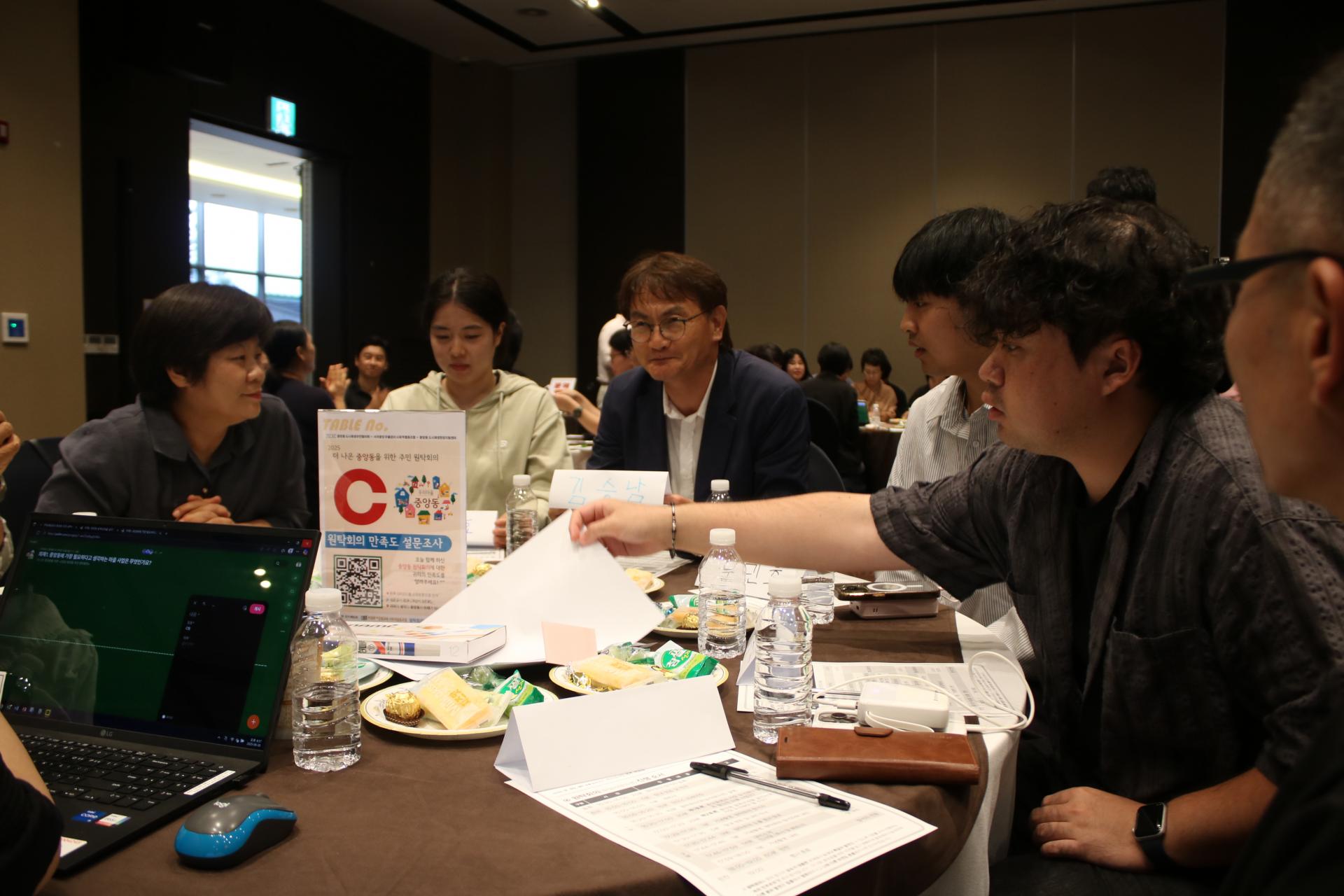 이후에는 사전 설문의 결과와 현장 회의 결과를 공유 및 비교하며 함께 이야기를 나눠보는 시간을 가졌는데요!